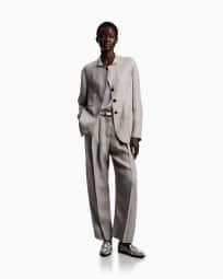Pleated trousers in basketweave linen