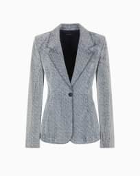 Single-breasted blazer in flocked denim with an all-over chevron motif