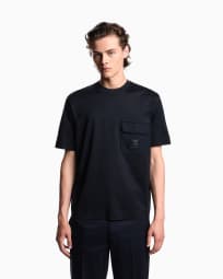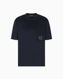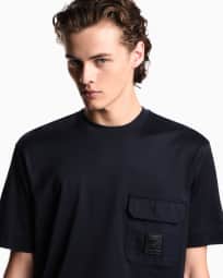 Camiseta de punto mezcla de lyocell con bolsillo de nailon y parche con logotipo