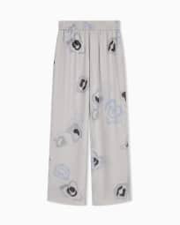 Pantalones en chifón de seda con estampado floral efecto acuarela