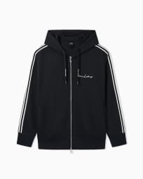 Sudadera con cremallera completa de algodón regenerado y bandas en las mangas