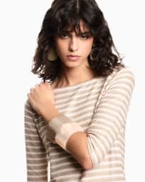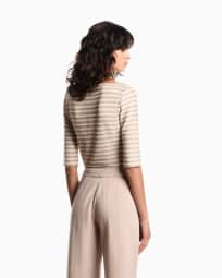 3/4 sleeve shirt in striped jacquard jersey with pattern