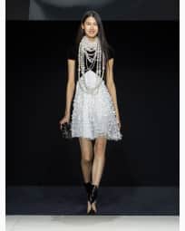Vestido con top de terciopelo y falda con flecos de lentejuelas bordados a mano