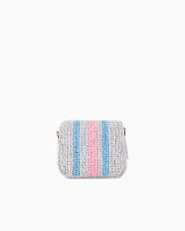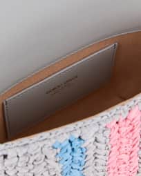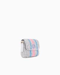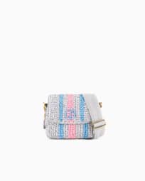 Striped woven raffia la Prima bag with webbing shoulder strap