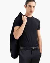 Camiseta de punto de viscosa elástico con cuello redondo y manga corta