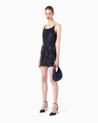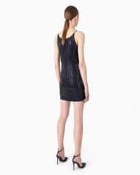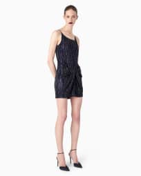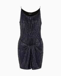 Vestido corto de seda con bordado de cristales