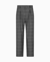 Pantalon à pinces en laine et soie avec motif à carreaux