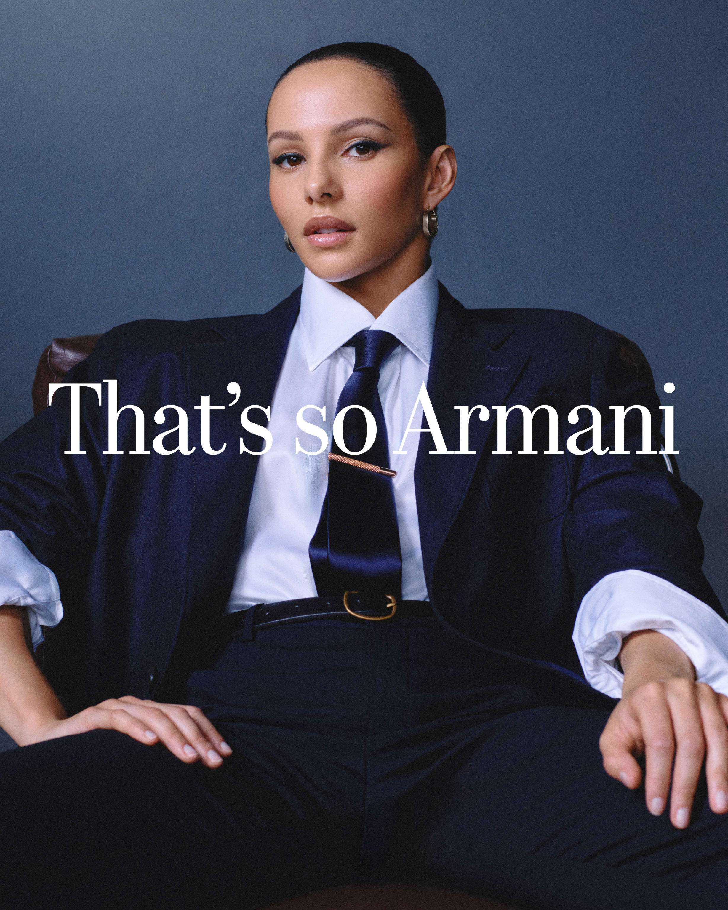 - Francesca Hayward, étoile du ballet contemporain, participe au projet That’s So Armani, apportant son élégance naturelle et sa force expressive en dialogue avec l’esthétique de la maison.