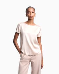 Blouse à manches courtes en satin de soie