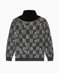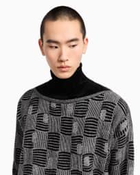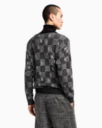 Pull à col montant en cachemire, viscose et soie jacquard