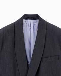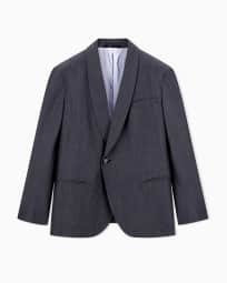 Veste à simple boutonnage en laine vierge, abaca et soie effet denim