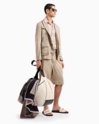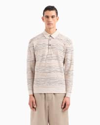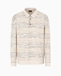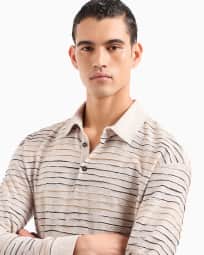 Polo à manches longues en jersey de lin, coton et viscose à finition jacquard