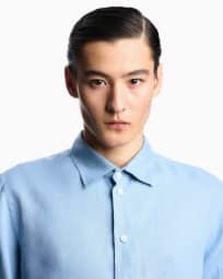 Camicia collo francese in lino tinto capo