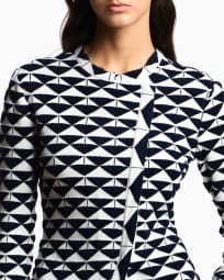 Giacca con chiusura decentrata in viscosa jacquard motivo astratto