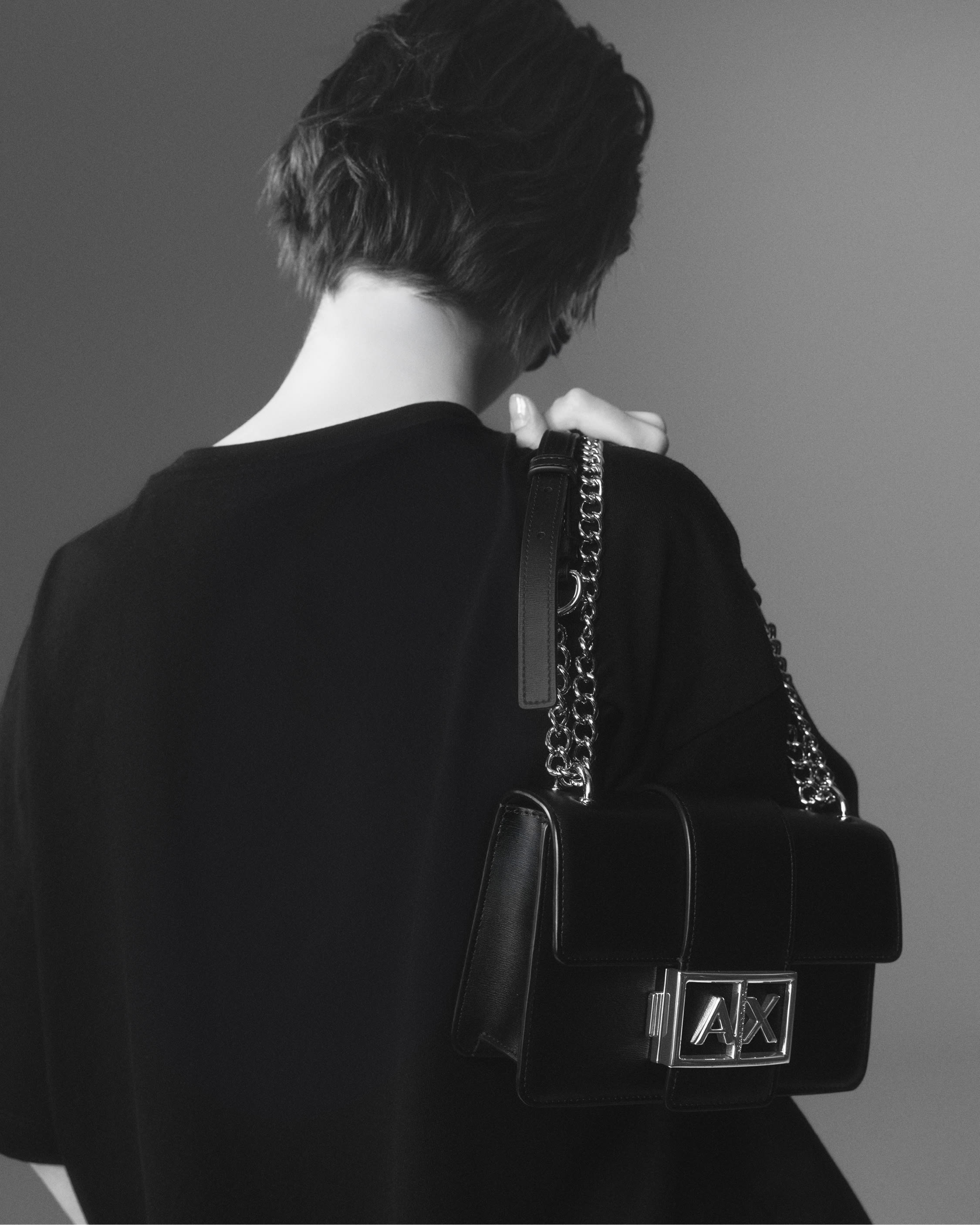 Le borse da donna firmate A|X propongono modelli dal design distintivo, arricchiti da dettagli iconici come i loghi tono su tono o in rilievo, le finiture metalliche dall’effetto sofisticato e le lavorazioni materiche che aggiungono più carattere. La collezione comprende proposte a spalla, a tracolla con catena, a mano o shopper, per accompagnare ogni momento della giornata con sobria eleganza.