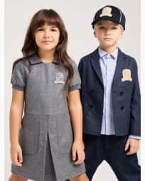 Abito con maniche a sbuffo in misto lana con patch stemma logo