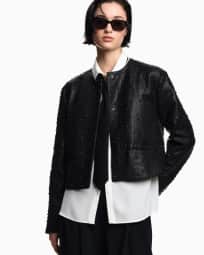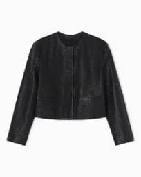 Giacca boxy in nappa di agnello vegetale con cristalli all over