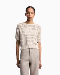 Maglione maniche corte con trama traforata