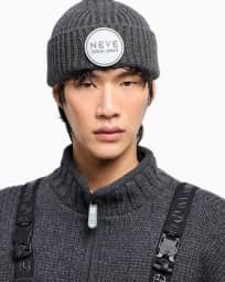Beanie in cashmere a coste Giorgio Armani Neve