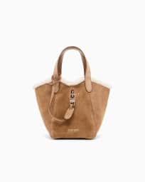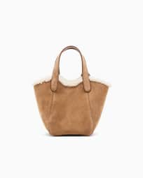 Borsa a mano piccola in suede e shearling di montone Giorgio Armani Neve