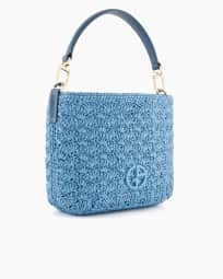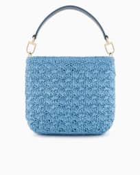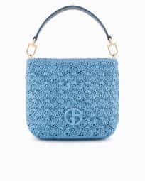 Borsa a spalla piccola in rafia punto ventaglio e pelle