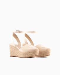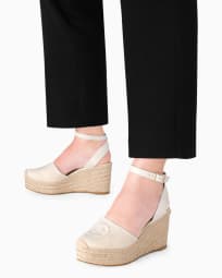 Espadrillas in cotone con zeppa e logo ricamato