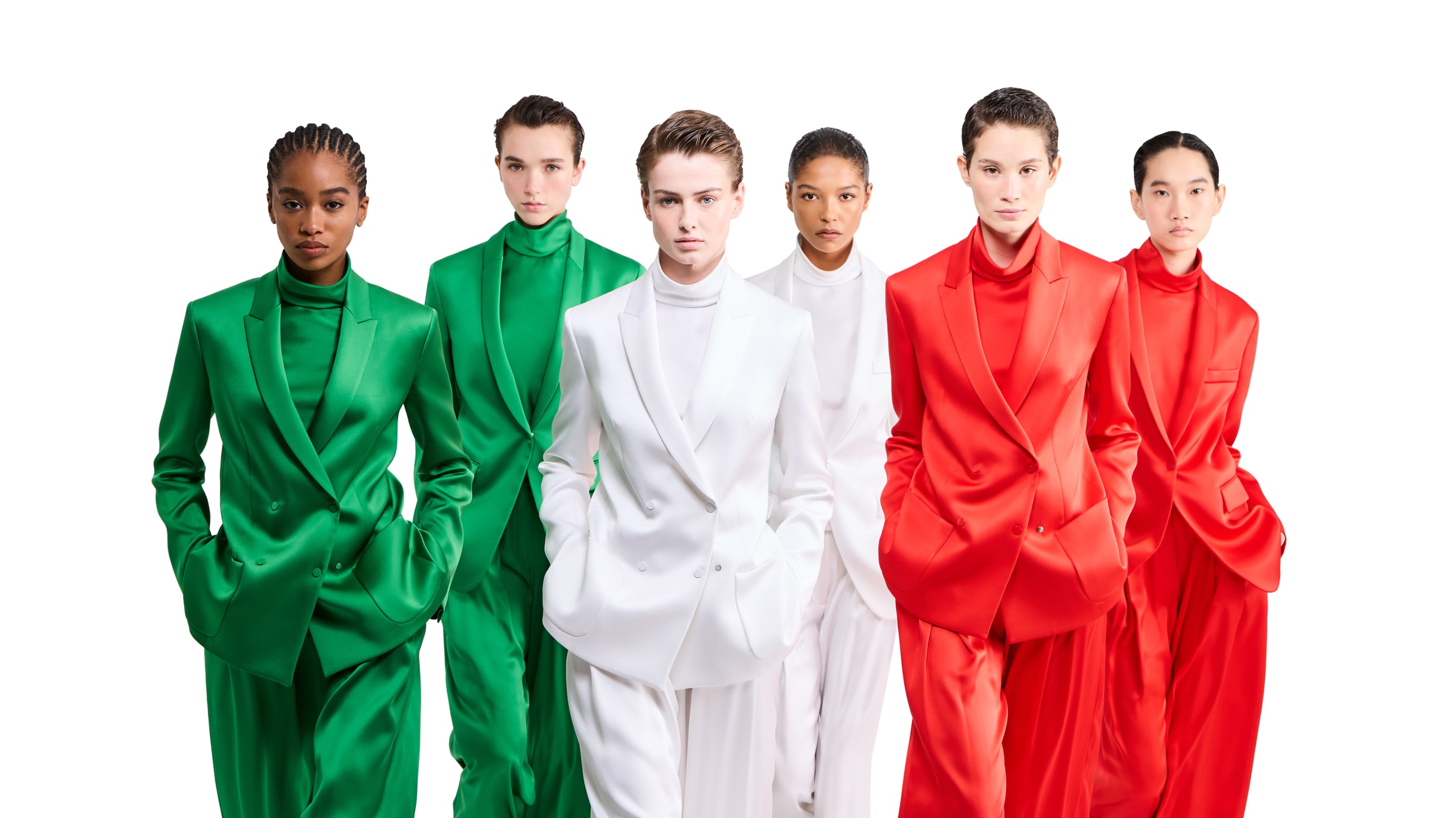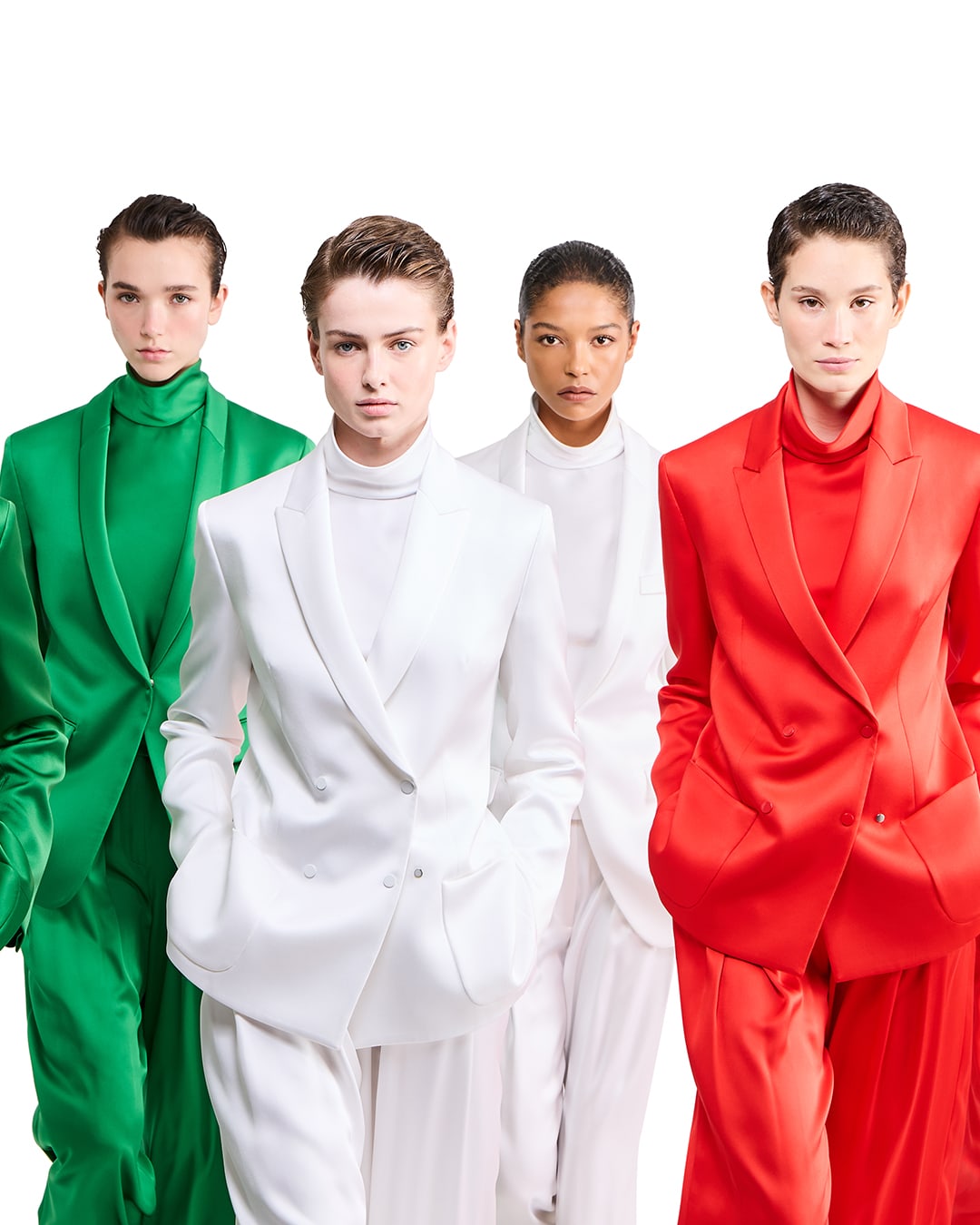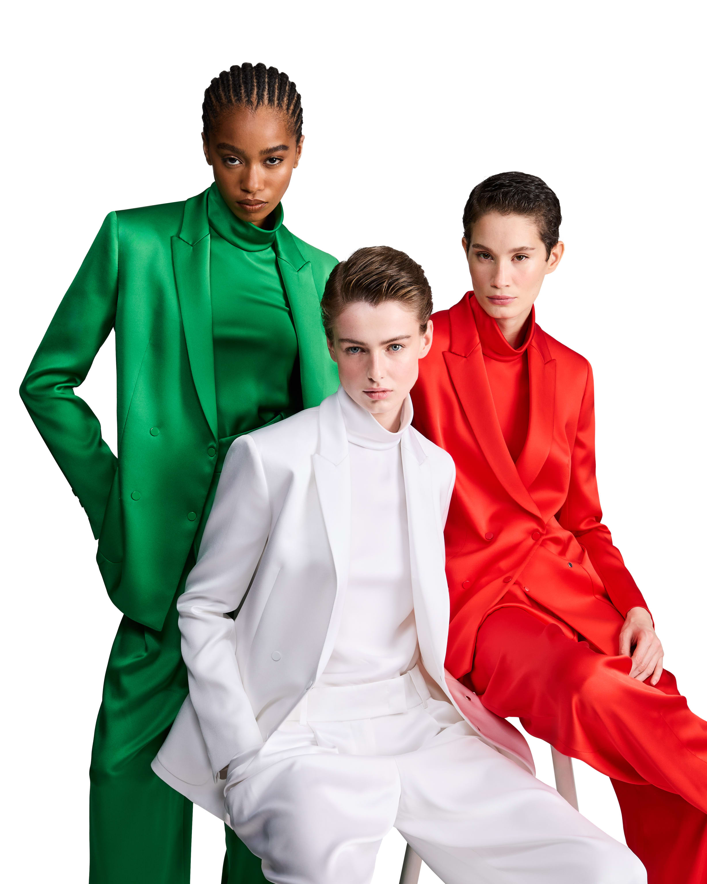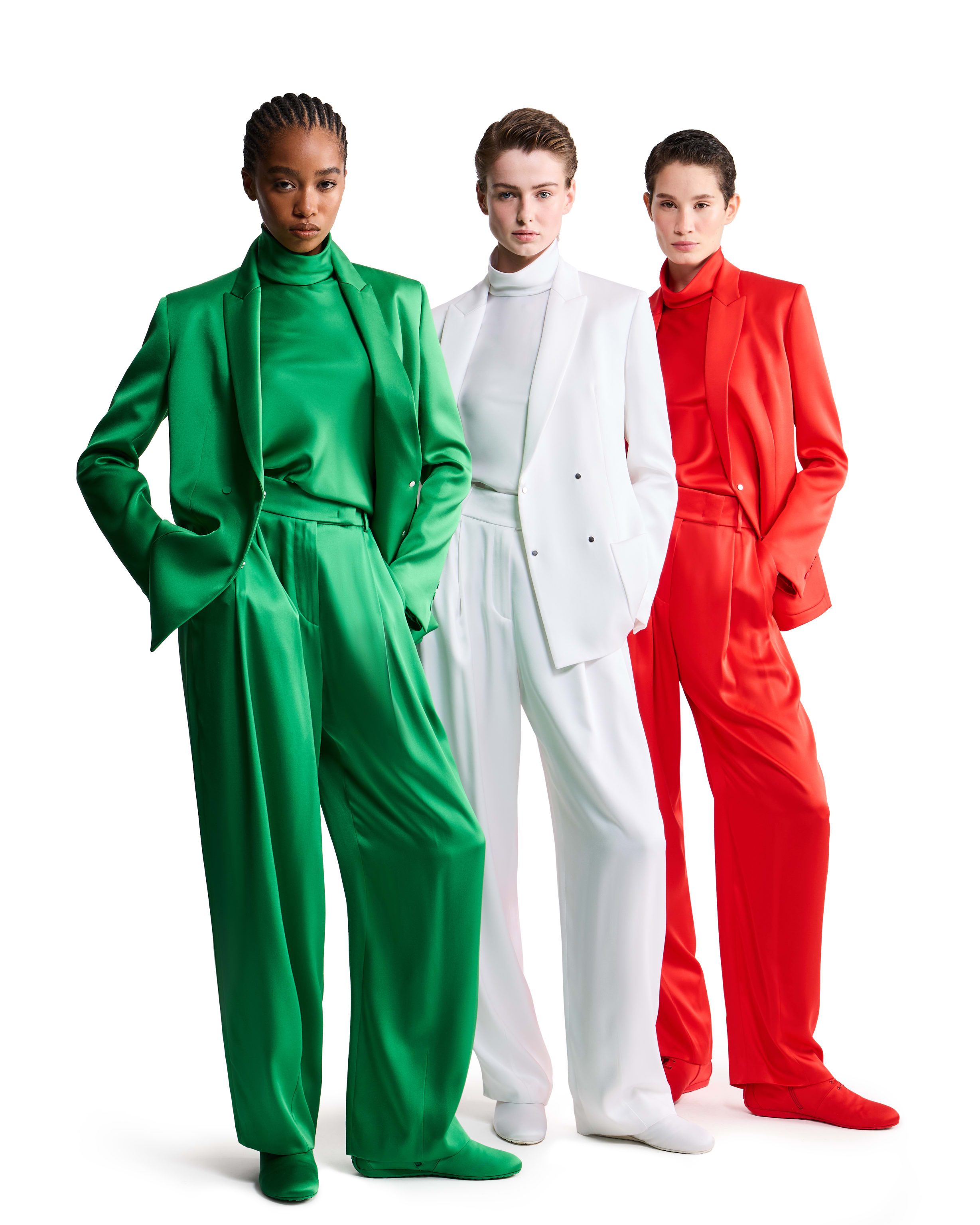 UN OMAGGIO AL TRICOLORECompleti dal design raffinato ed essenziale, realizzati in pregiato raso di pura seta, un tessuto dalla naturale lucentezza e declinati in tre nuances esclusive, che riprendono con delicatezza e armonia i colori del tricolore, rendendo omaggio alla bandiera italiana.