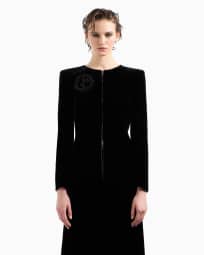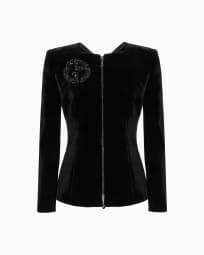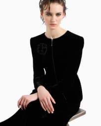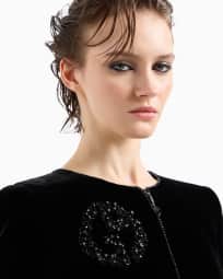 Giacca con zip in velluto con dettaglio fiocchi e ricamo