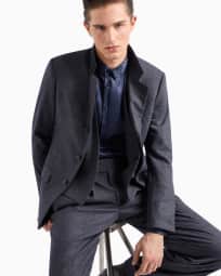 Gilet doppiopetto in lana vergine e cashmere effetto denim