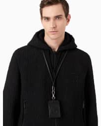 Porta badge in pelle con logo ricamato