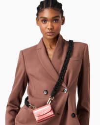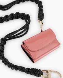 Portafogli trifold mini la Prima in vernice con tracolla in strass