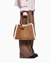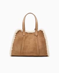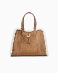 Tote bag grande in suede e shearling di montone Giorgio Armani Neve
