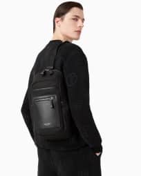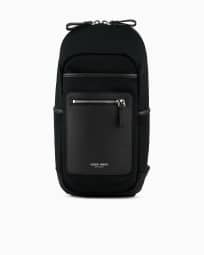 Zaino monospalla in nylon e pelle granata