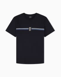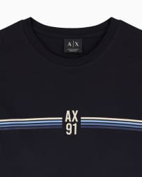 91ロゴ グラデーションラインディテール レギュラーフィット 半袖クルーネックTシャツ