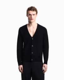 Vネックカーディガン バージンウール ボンディング