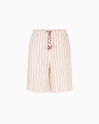 リゾートカプセルコレクション ドローストリング バミューダパンツ リネン ピンストライププリント