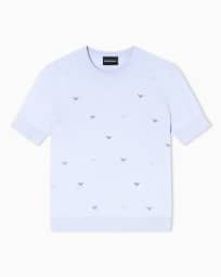 Shaved cotton sweater with allover embroidery