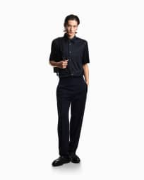 スリムフィット半袖シャツ リヨセル混紡ジャージー