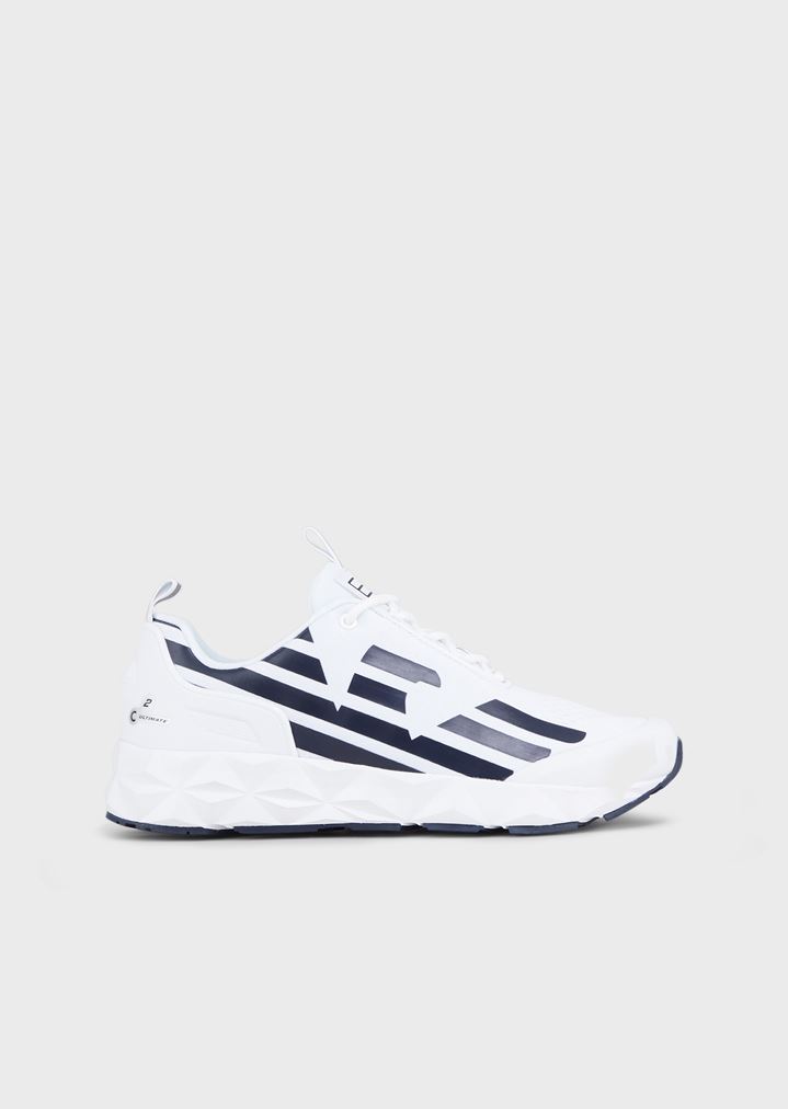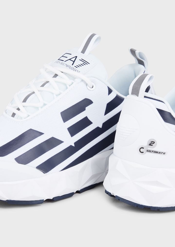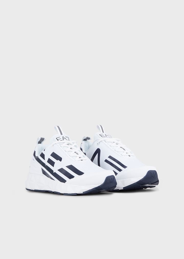 レースアップスニーカー メッシュ素材 ブラック&ホワイト メタリックロゴソール