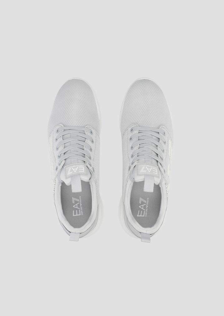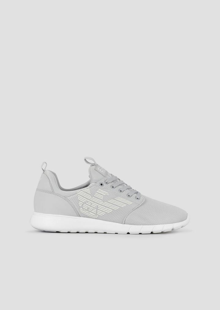 レースアップスニーカー メッシュ素材 ブラック&ホワイト メタリックロゴソール