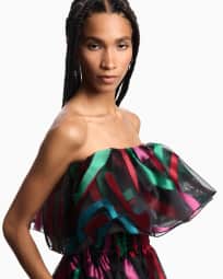 러플 디테일 멀티컬러 필 쿠페 오간자 드레스