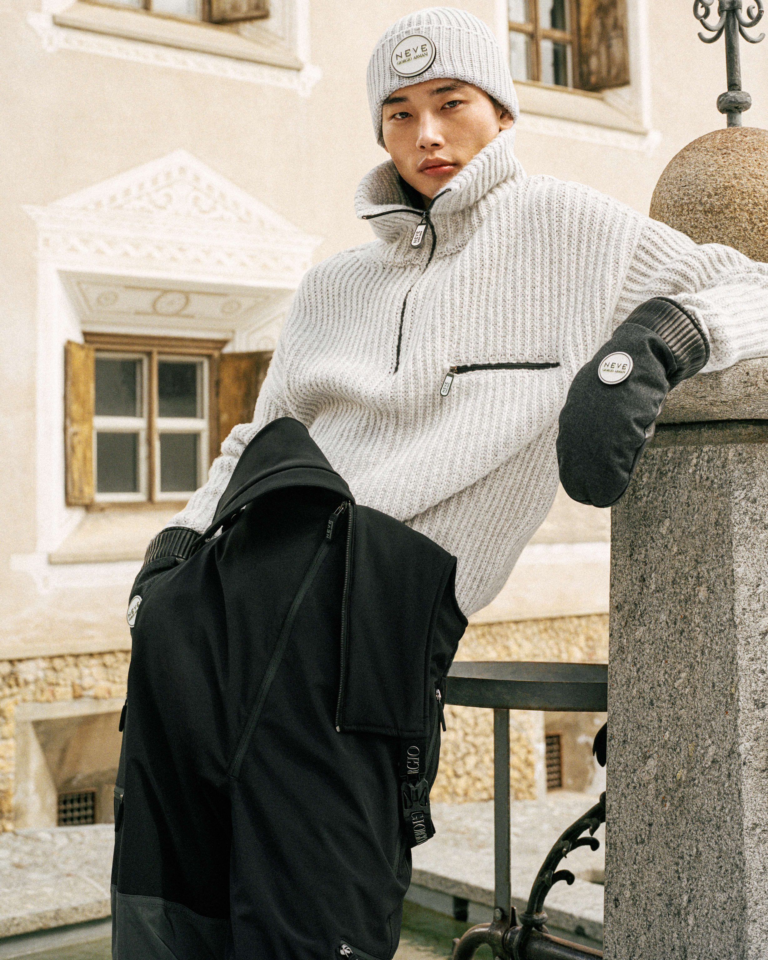 - 부드럽고 따뜻한 실로 제작된 감싸주는 볼륨의 아이템들은 조르지오 아르마니 네베 컬렉션의 본질을 담고 있습니다. 세련미와 기능성을 조화롭게 결합하여 스타일리시하게 산을 즐길 수 있는 이상적인 제안입니다.